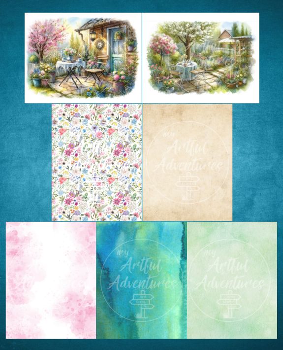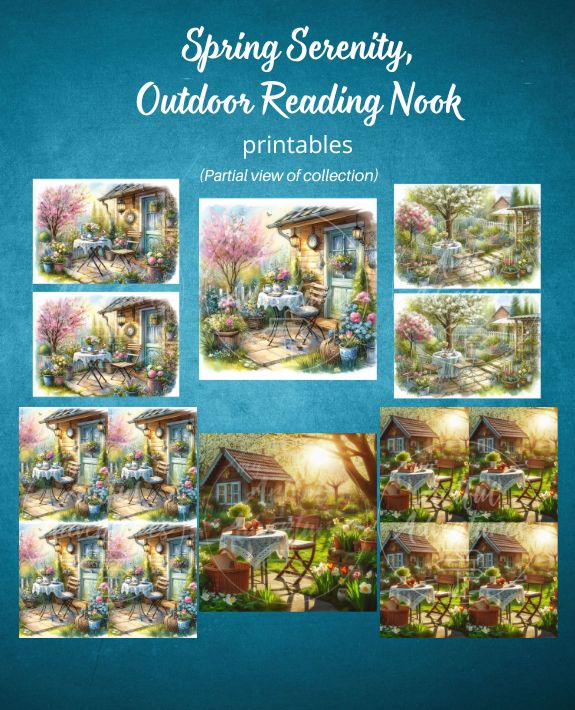 This collection of printables features three different outdoor small seating areas perfect for reading or enjoying a quiet moment outdoors.